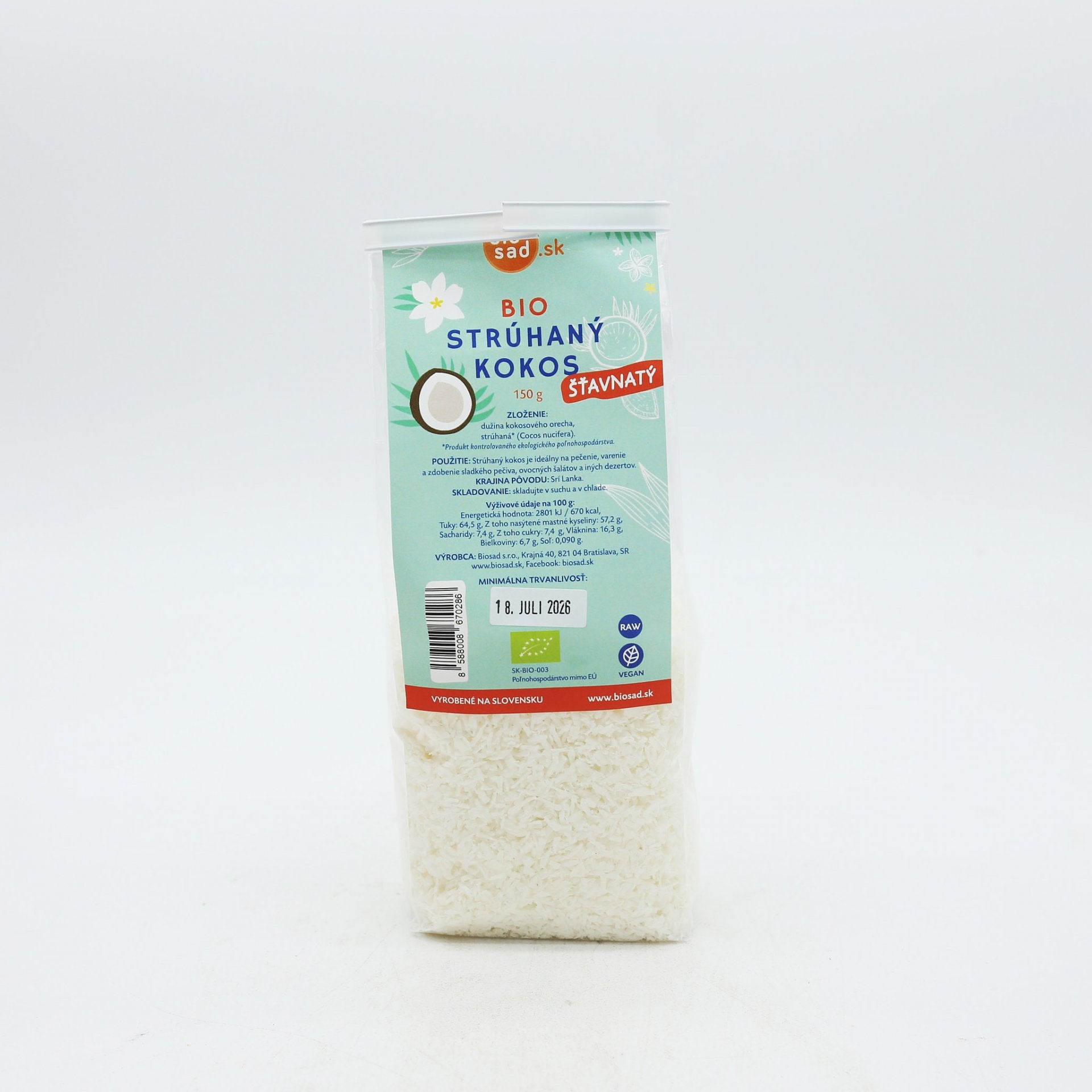 Bio kokos strúhaný šťavnatý 150g