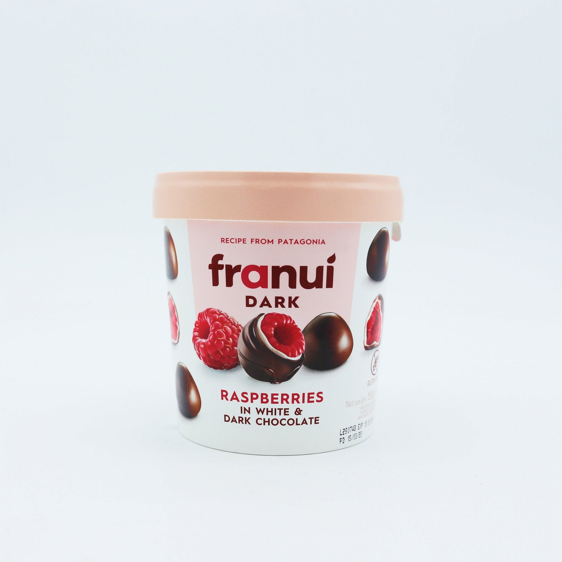 Najlepšie občerstvenie. Čerstvo zmrazené maliny pokryté dvoma vrstvami remeselnej čokolády.